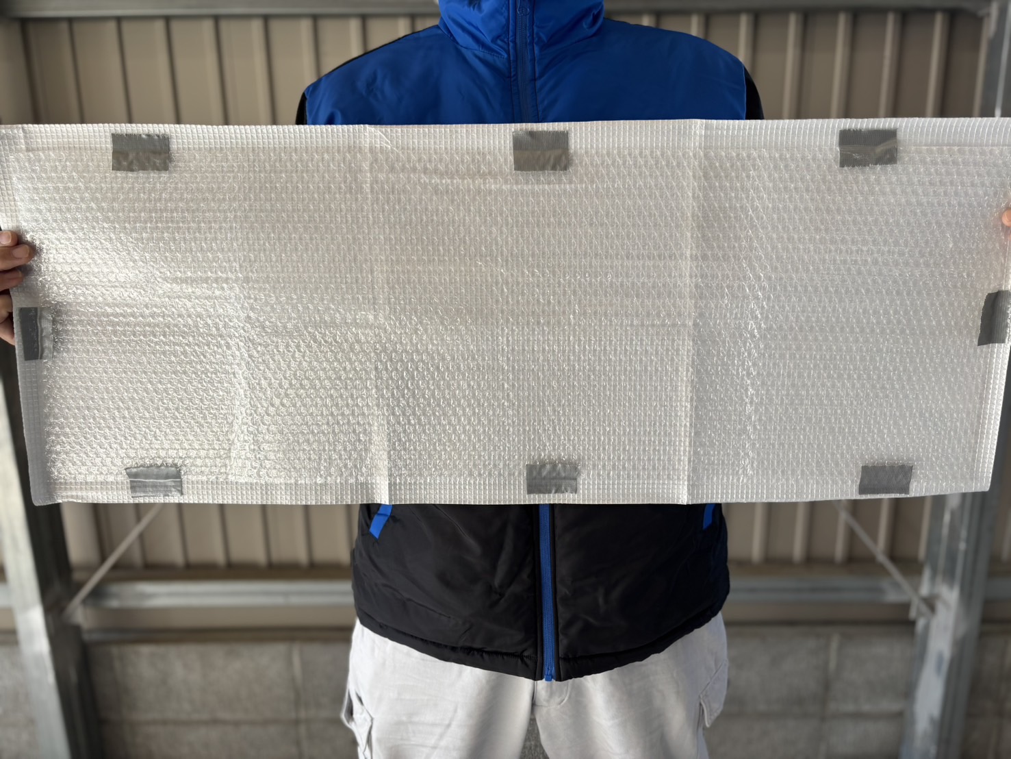 次に気泡緩衝材(プチプチ)とアルミ保温シートをカットしていきます。