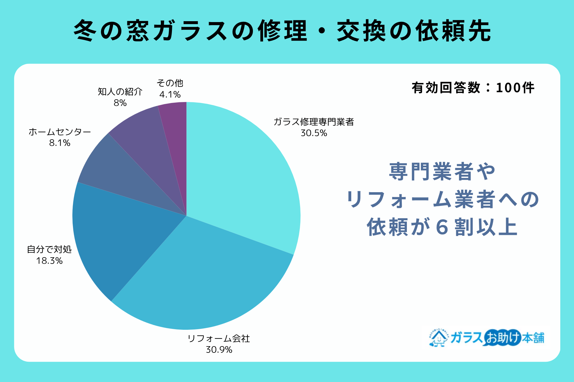 多くの人が、冬の窓ガラストラブルの対処を専門業者に頼っていることがわかります。
