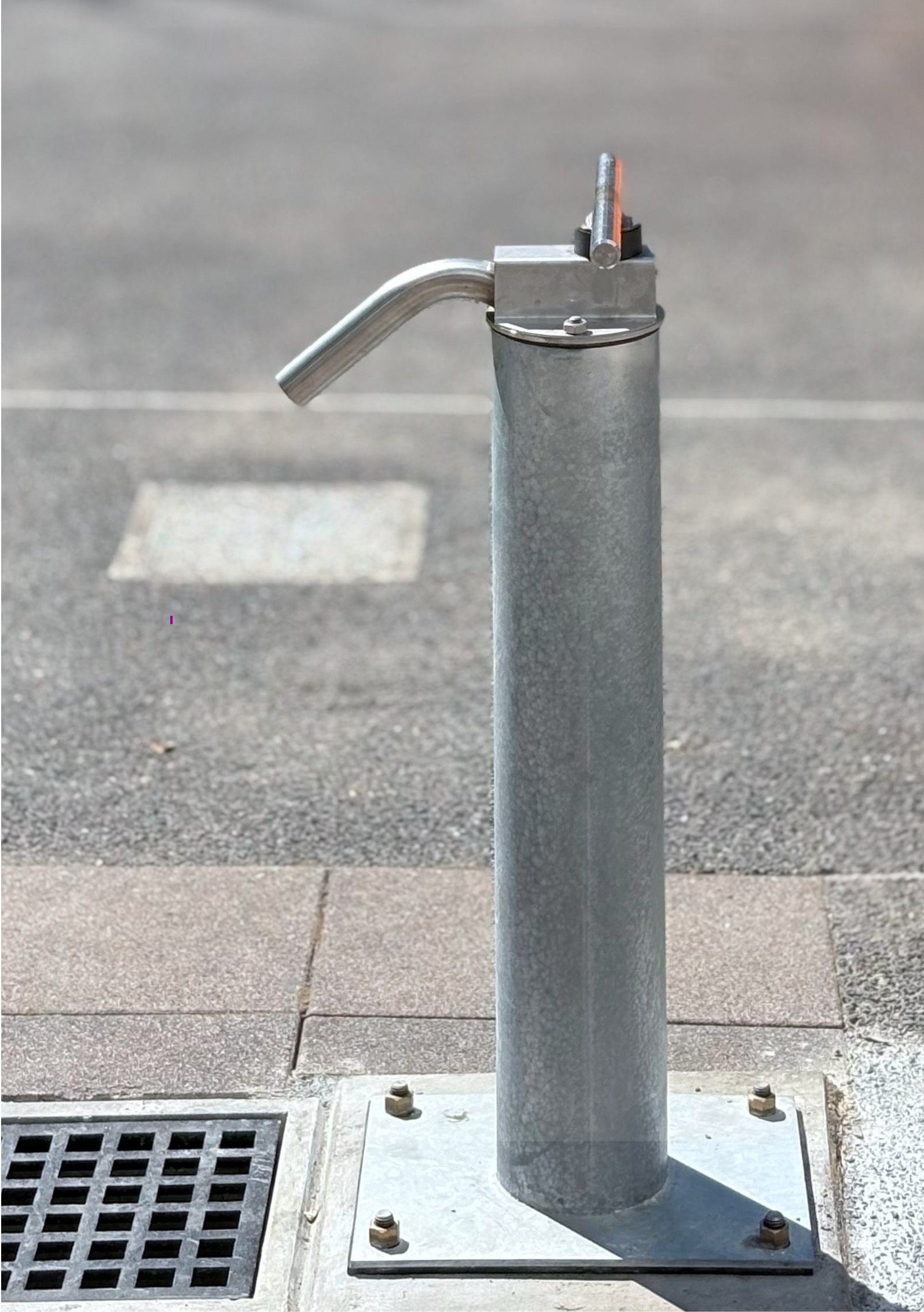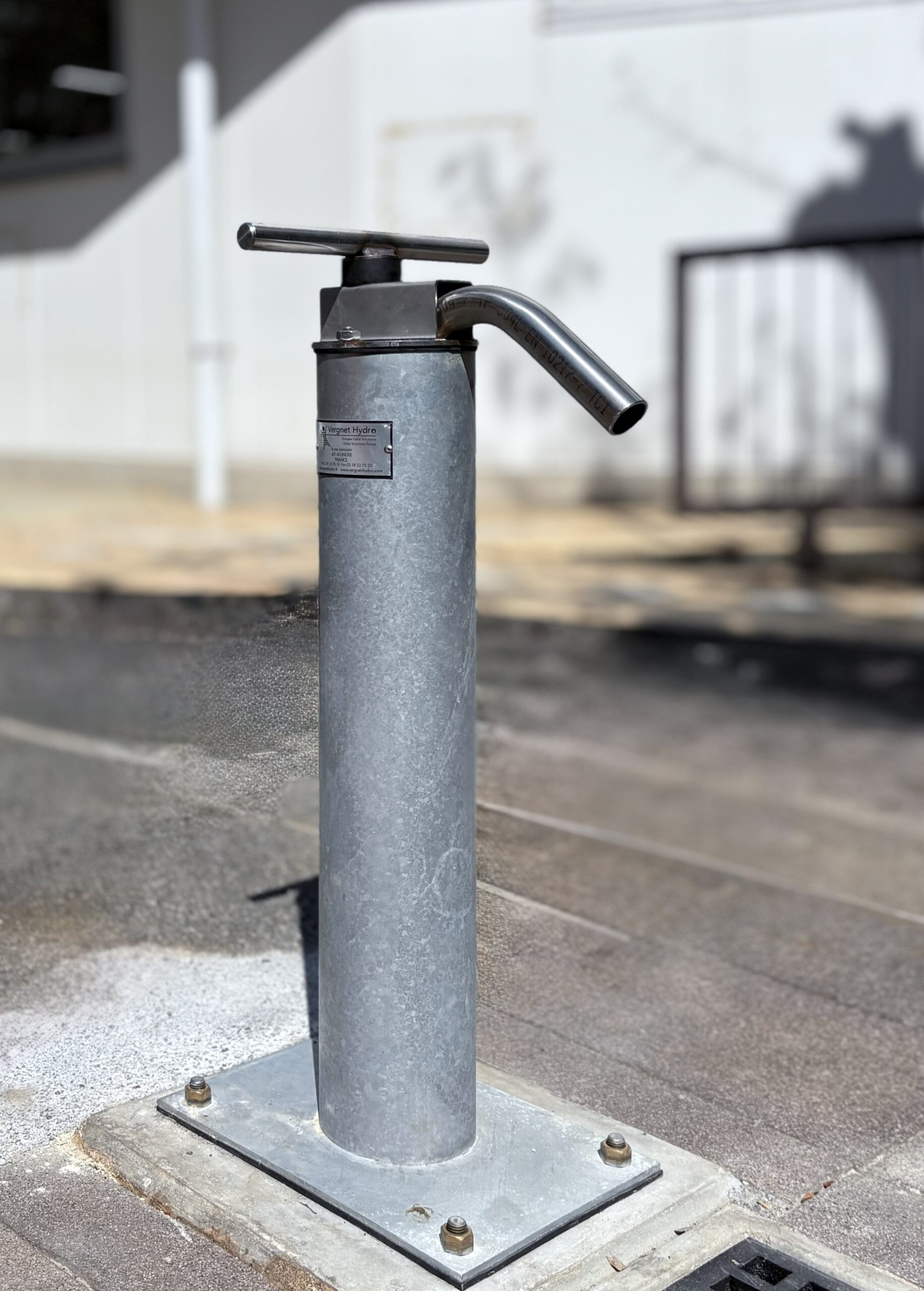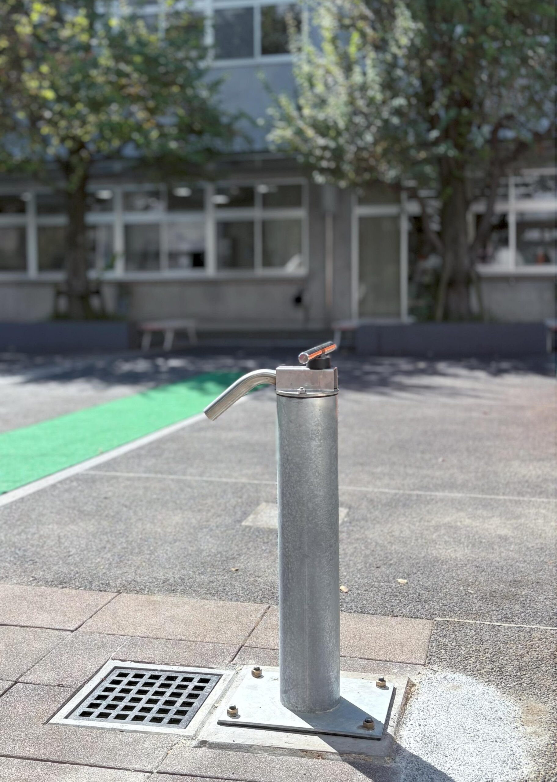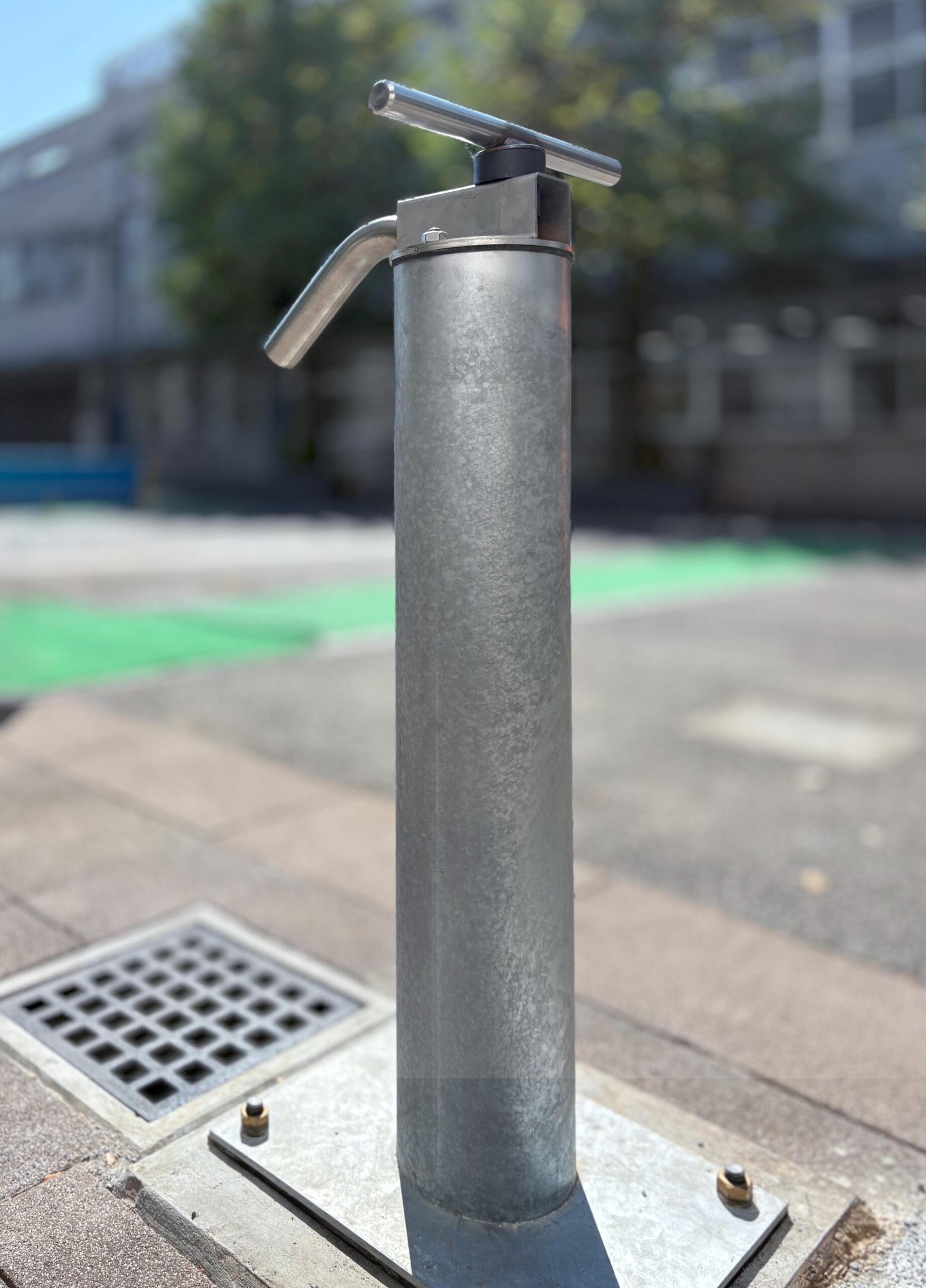 過酷な自然環境下で長年使用されてきた、仏・Vergnet Hydro社製の深井戸用人力ポンプ。安全性・操作性・耐久性・デザイン性を兼ね備え、2025年品川区内小学校に防災井戸として設置しました。