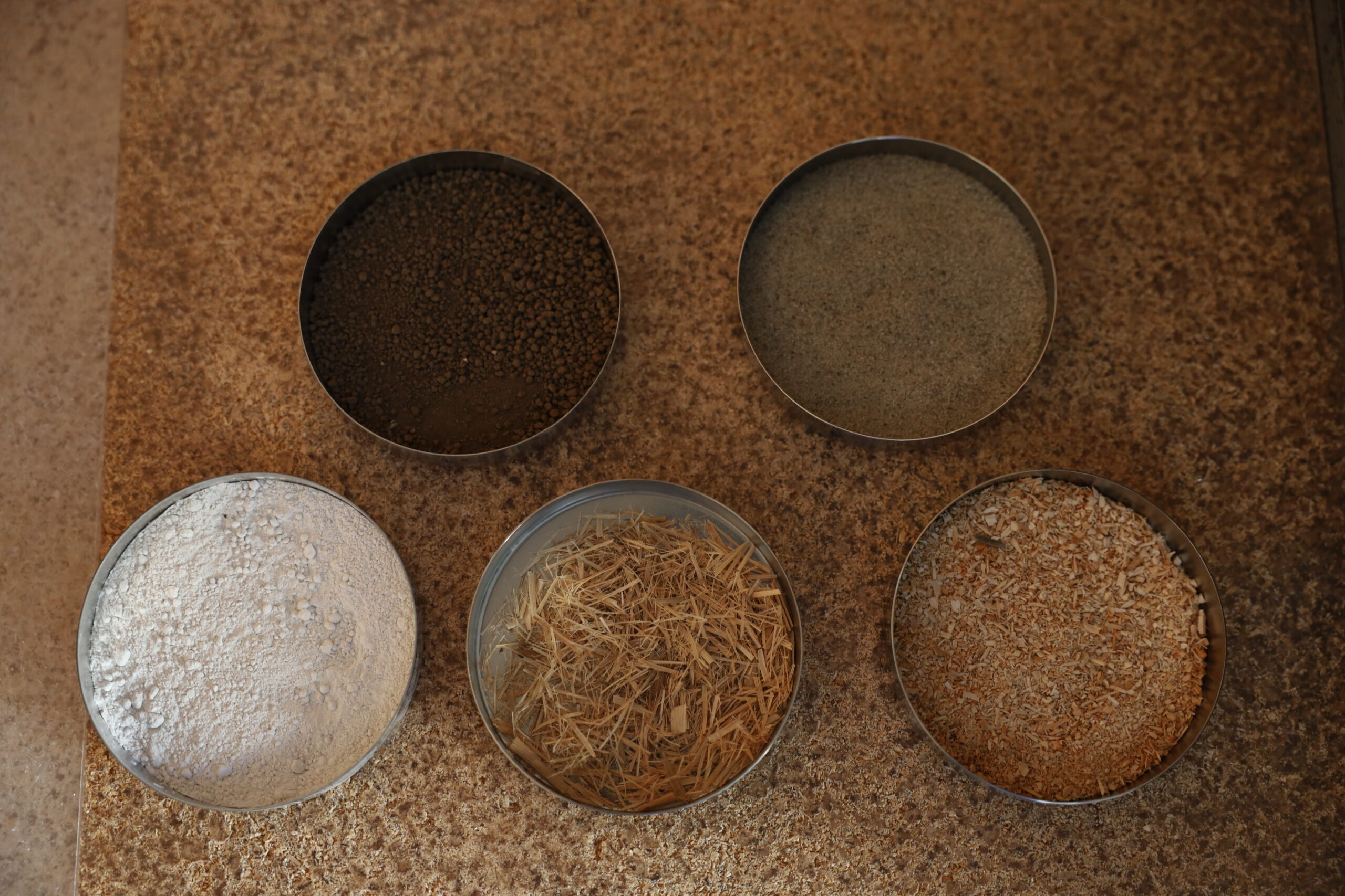 「立体木摺土壁」は建設発生土や藁スサ、おがくずといった自然由来の素材を用いながら、土と木を積層した壁です。古来より世界中で用いられてきた、日干し煉瓦を応用して、内装材として淺沼組で独自開発しました。土壁を自立可能な構造として安定化・軽量化し、短時間での施工を可能にしました。自然素材のみの使用により、低炭素性(建設時CO2排出量抑制)、炭素貯留性(土と木に炭素を貯留)、資源循環性(土と木の分離による再生利用)、吸放湿性(空気環境改善)に優れています。今後、本構法がより幅広く活用されることを目指し、耐火大臣認定取得も視野に、研究開発を進めてまいります。(特許第7723873号)