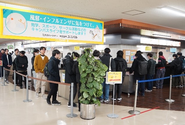 近年、食料品価格や外食費の高騰が続くなか、学生の昼食代は大きな負担となっており、学生生活にも大きな影響が生じています。東北工業大学では、「せめてこの日は、値段を気にせず温かい食事をとってほしい」という思いから、2022年より学生食堂企画「100円カレーDAY」を実施しています。毎回およそ700名の学生・教職員が利用し、学生からも高い支持を得ている取り組みです。
