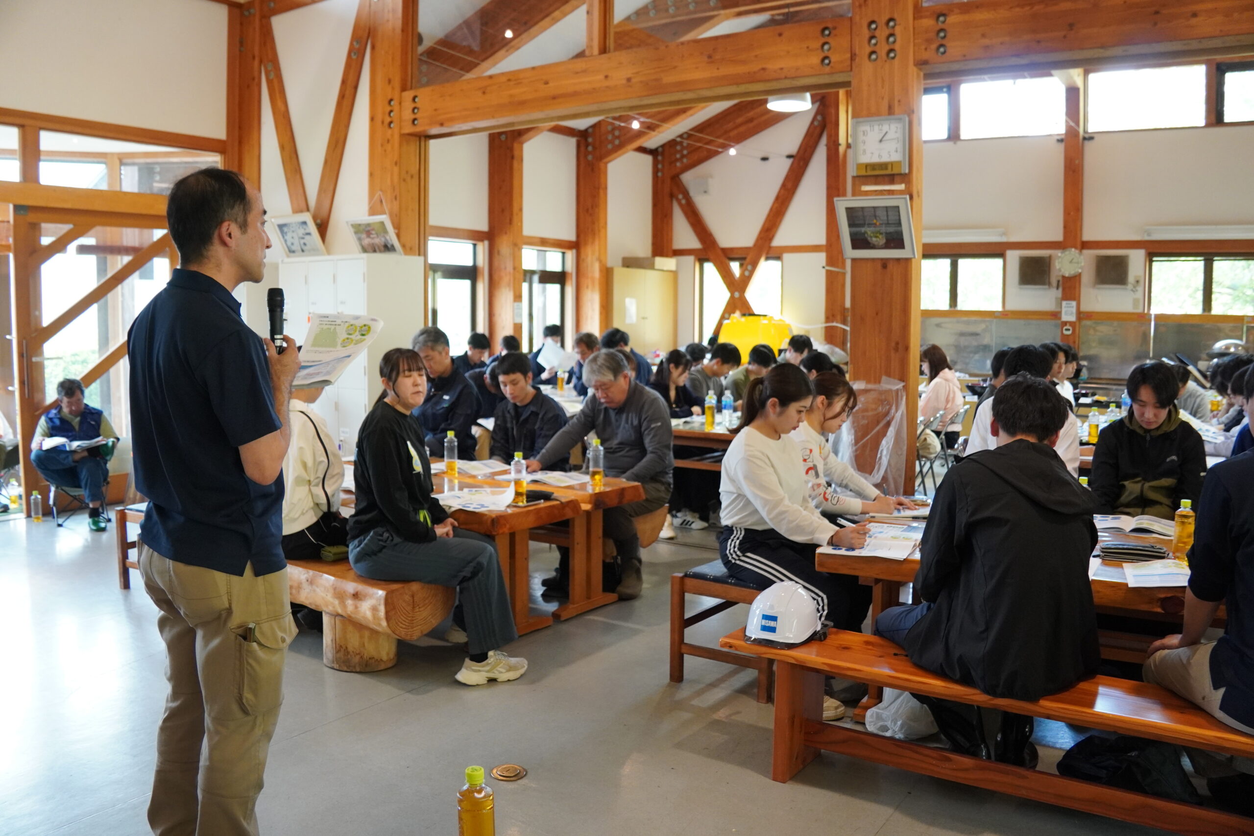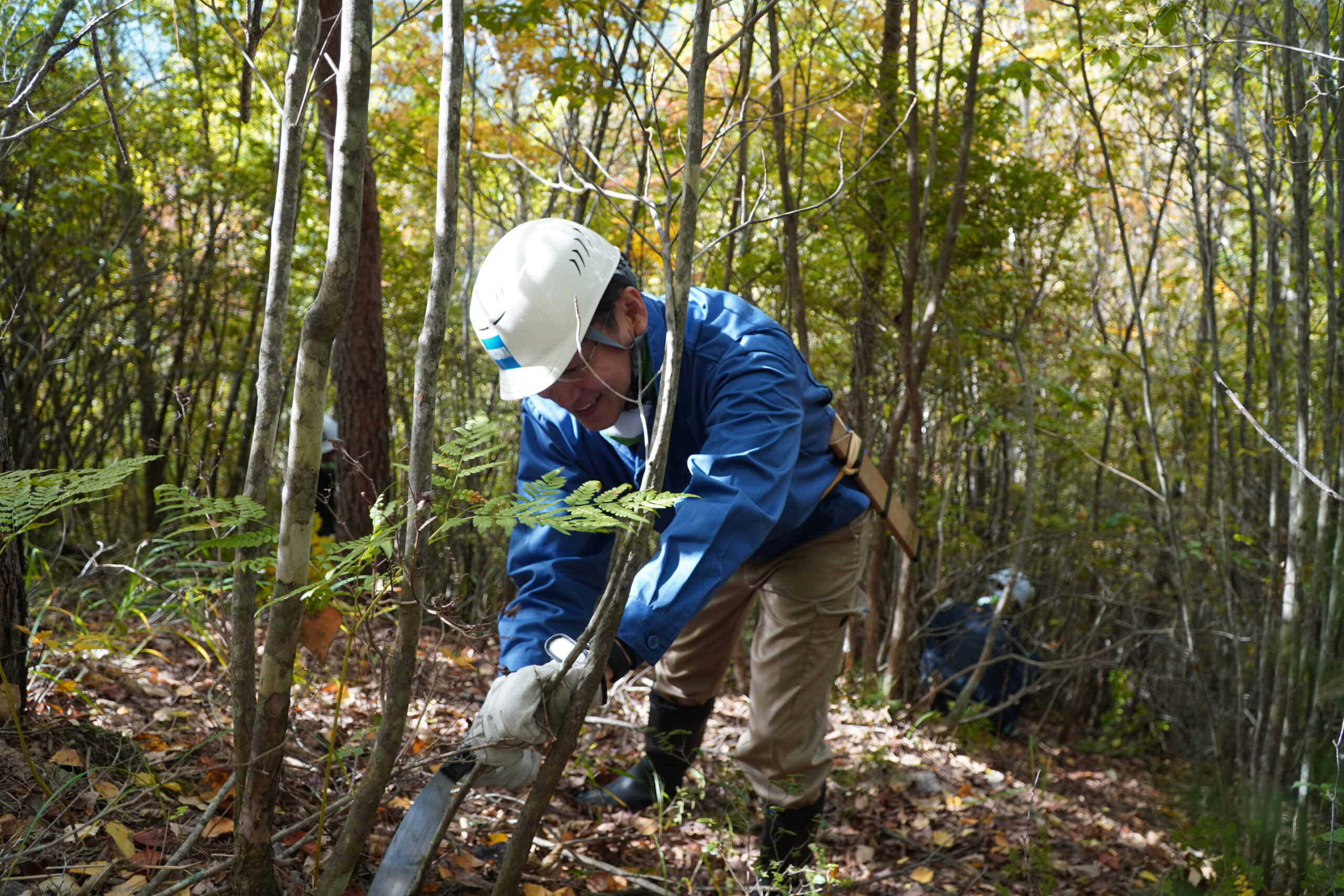 こうした地域への感謝と、森林資源の恩恵を受ける企業としての社会的責任を背景に、2014年に長野県の「森林(もり)の里親促進事業」を活用し、松本市奈川地区にある6.9haの市有林を「ミサワホームの森 松本」として開設しました。以来、10年以上にわたり全国から集まったミサワホームグループの社員やその家族に加え、次世代を担う新入社員の研修の場としても活用し、自らの手で間伐や下刈りを行うことで環境保護への意識を醸成しています。
