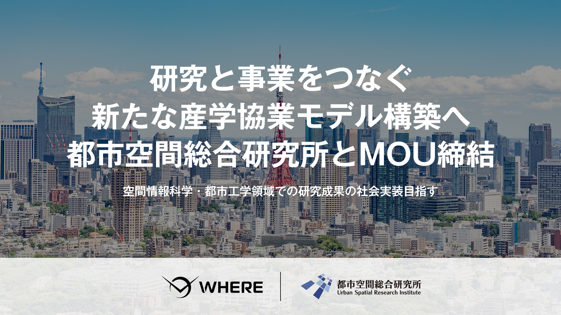 株式会社WHERE(本社:東京都、代表取締役:阿久津岳生、以下「WHERE」)は、株式会社都市空間総合研究所(本社:東京都渋谷区、代表取締役:水谷昂太郎、以下「都市空間総合研究所」)と、都市計画および空間情報分野における研究成果の社会実装を目的とした連携協定(MOU)を締結しました。