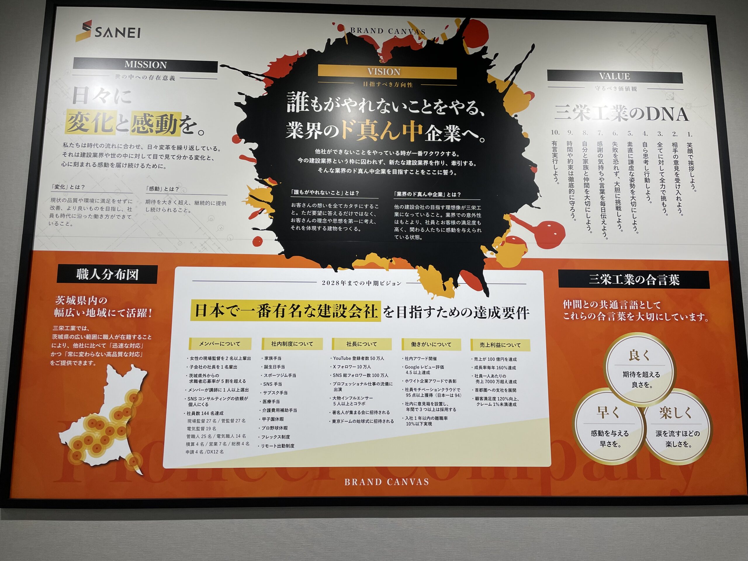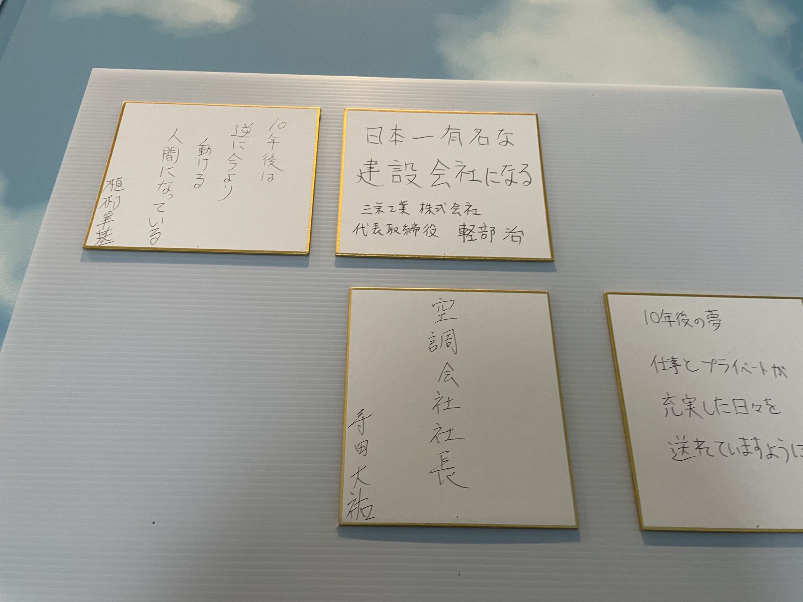 「10年後の目標」を全社員が掲げている。「日本一有名な建設会社になる」という目標は、代表の軽部氏によるものだ。