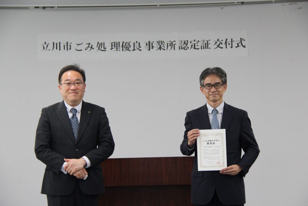 日頃のECO活動が評価 立川事業所が「ごみ処理優良事業所」に継続認定