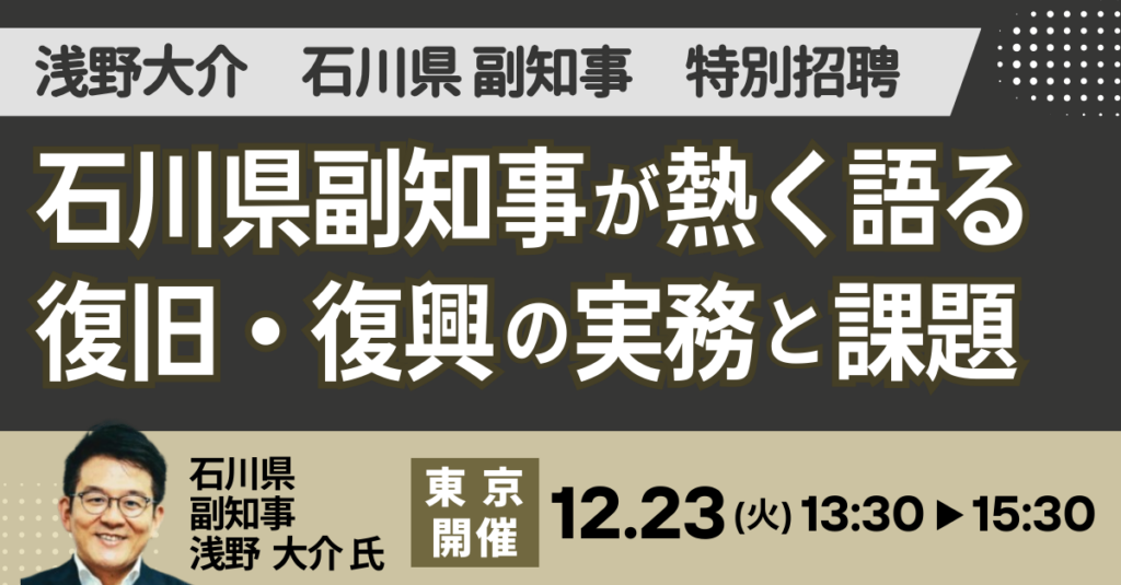 【JPIセミナー】「石川県副知事が熱く語る 復旧・復興の実務と課題」12月23日(火)<東京開催>