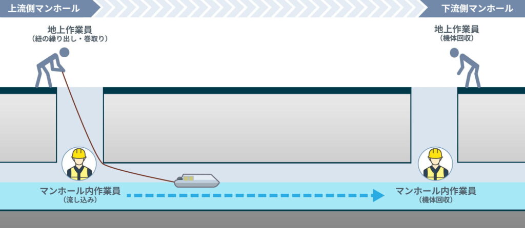 600mm以下の小口径な下水道管点検の効率化に向けて、浮子型ボートを用いた管路内撮影に成功